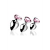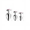 Set of metal anal plugs with a pink heart-shaped base, ideal for sensual, romantic and temperature play.