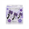 Set of 3 metal anal plugs with a violet-shaped base for romantic and surprising anal stimulation.