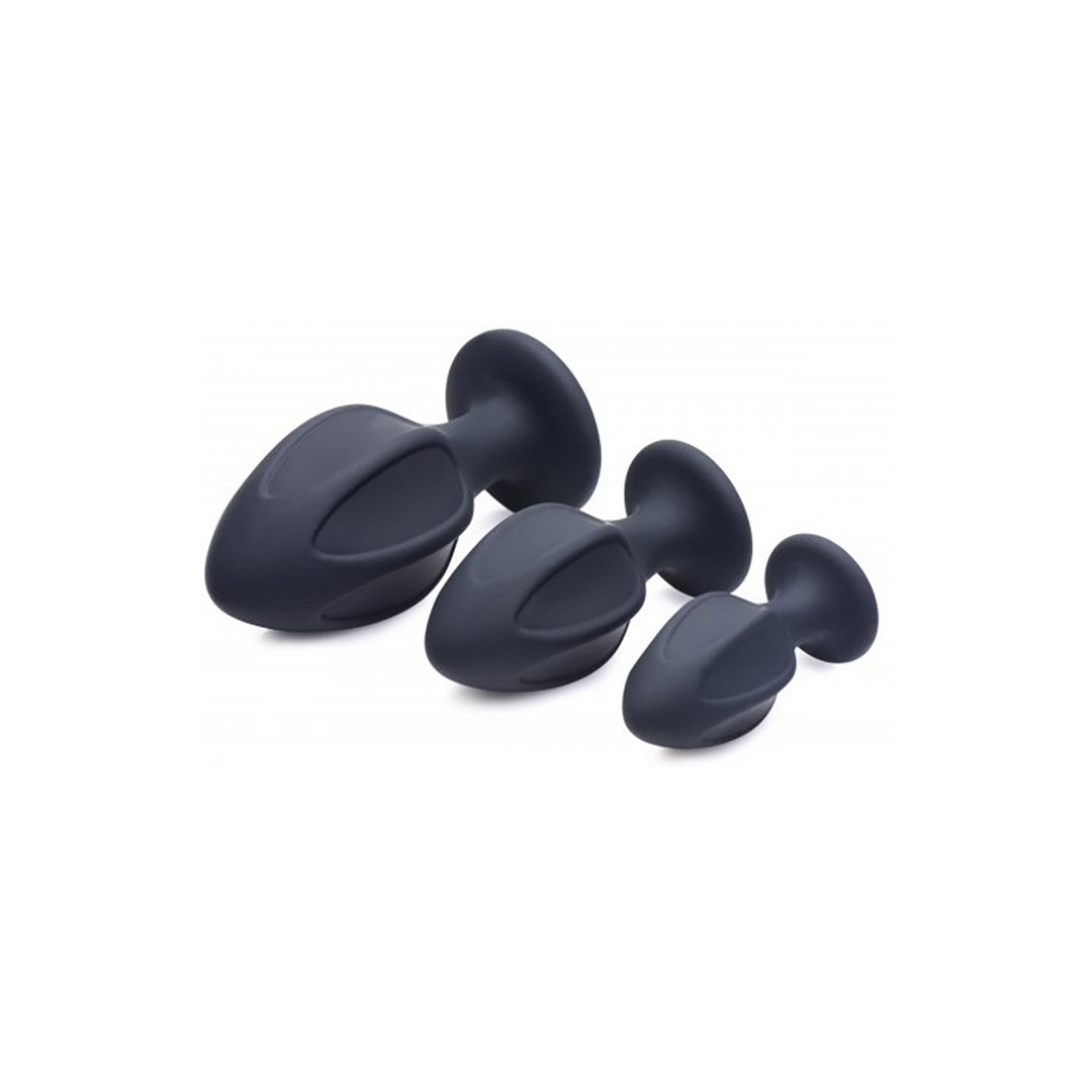 Trio of star-shaped anal plugs with suction cups, perfect for intense and progressive stimulation.