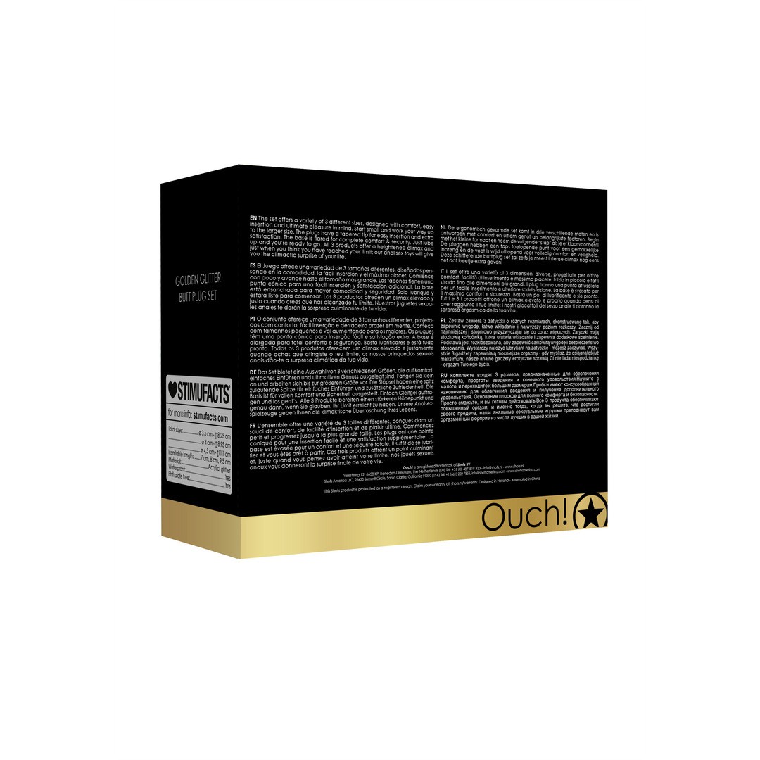 OUCH! ACRYLIC BUTT PLUG 3 PIECE SET GOLDEN