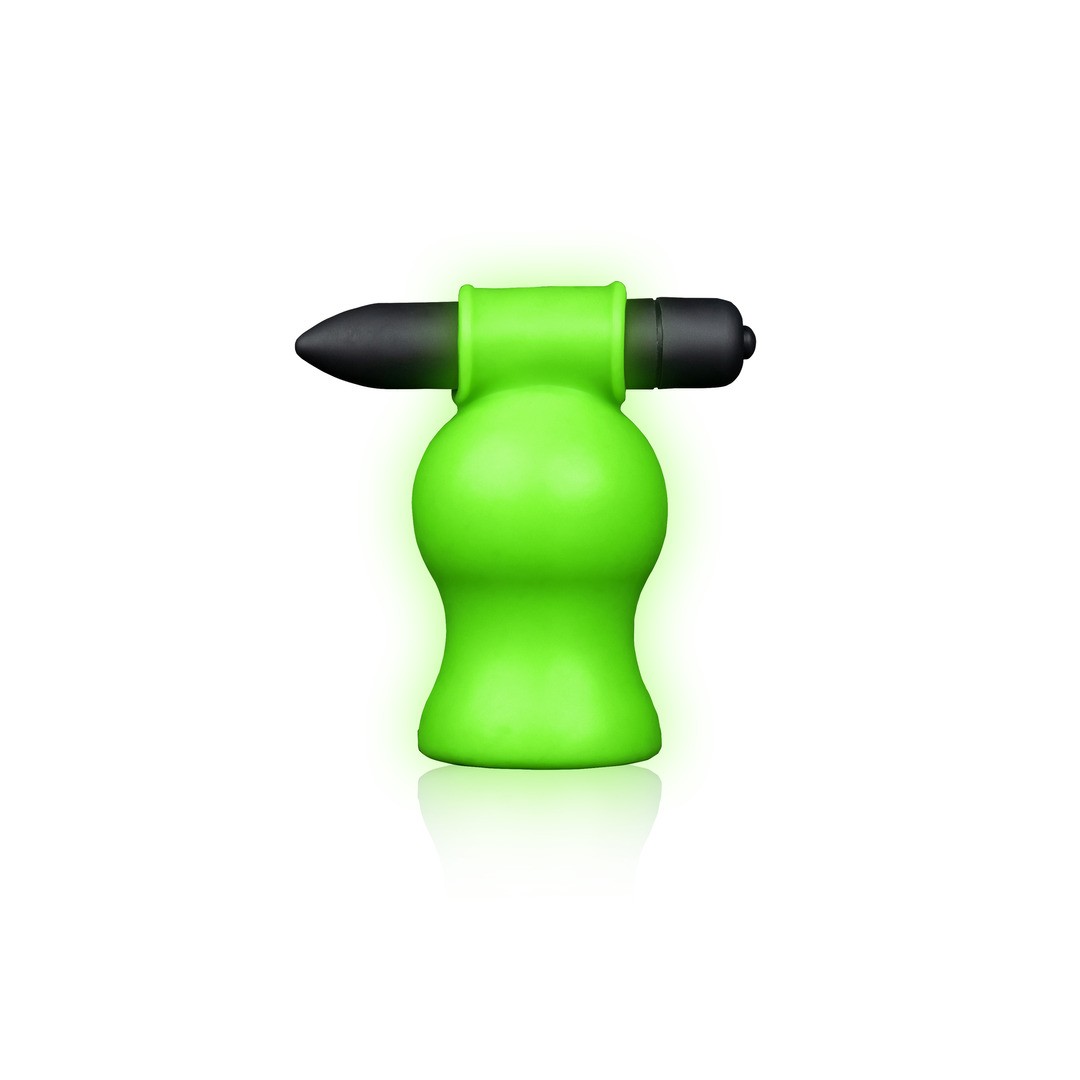 Gland stimulator with a vibrating bullet and glow-in-the-dark details for intense pleasure even when the lights are off.