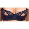 The underwired half-cup bra is fully covered in lace, featuring seductive cut-outs that enhance the cleavage. The bra straps and hook fastening at the back are adjustable for a perfect fit.