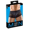 Stylish and provocative shorts with a practical, padded zip fastening at the front. This Svenjoyment model is made from soft black microfibre and features transparent striped inserts at the front and sides. Highly elasticated, it guarantees a comfortable fit and enhances the silhouette.