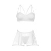 Charming lingerie set for special occasions consisting of three pieces. The bra, made of delicate lace, features intricate straps running upwards.