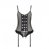 Passion's Nessy corset is a perfect fusion of black tulle and timeless leather that subtly emphasises the female silhouette, highlighting the natural beauty of the body under lingerie.