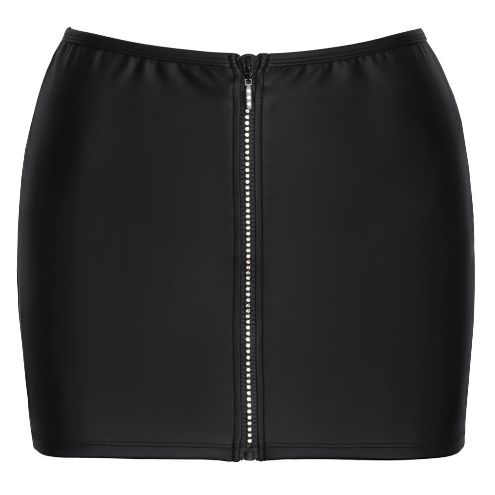 The Cottelli PARTY tight mini skirt is made of modern black matte-look material. It has a shiny full-length zip at the front, completely covered with rhinestones. With an elasticated waistband. The skirt itself is also soft and stretchy for a very comfortable fit, making it easy to wear.