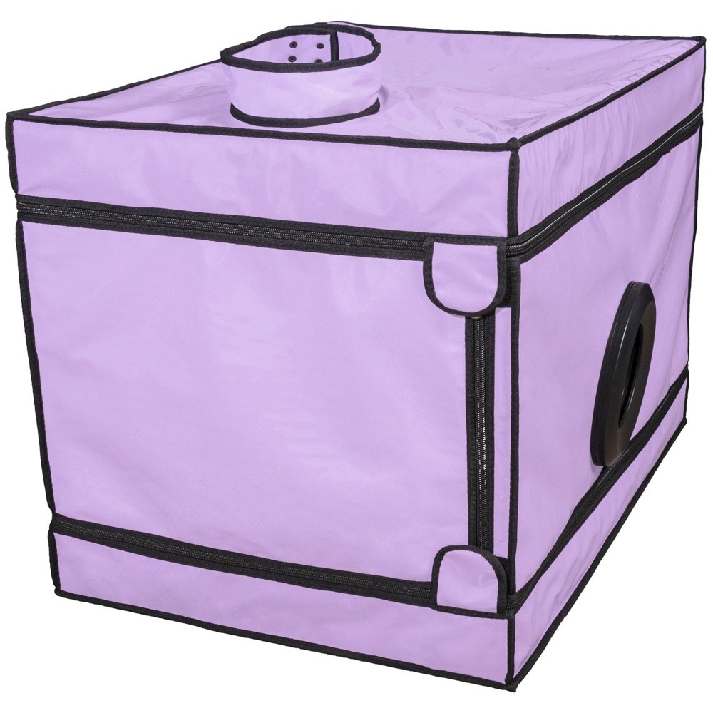 The closed BDSM box, La Niche from Secret Dome, is perfect for glory hole fun, dark games, captivating role play and other fantasies. The sturdy box with its tube plug-in system and robust cover can be quickly assembled and will be ready to use in no time at all. With 3 large holes at the sides. The hole for the head has a zip and a wide, adjustable collar. It also provides convenient access via the zip door. The LED light and a soft floor mat ensure great comfort. The included handcuffs and ankle cuffs (1 set of each) can be positioned inside as required. The soft padded restraints can be put on and adjusted quickly with the buckle fasteners.