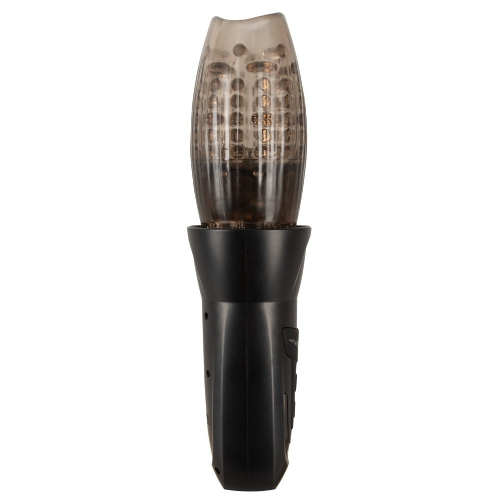 The transparent, smoke-coloured cup is made out of stretchy, skin-like TPE material and softly caresses the penis for a deceptively realistic feeling. The cup can be removed from the masturbator for cleaning.