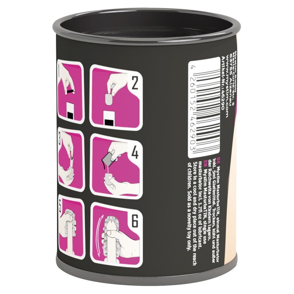 Mystim's MasturbaTIN Dotty Dora is ideal for an intense penis massage during masturbation, alone or with a partner. The soft sleeve provides pleasure thanks to its dotted and well-marked internal texture. It can also be tightened firmly for even more intense stimulation. The sleeve is extremely soft and elastic, offering a highly realistic sensation. It's reusable and easy to clean. Comes with an elegant gift tin.