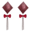 The Nipple Jewellery Bow stickers from Cottelli ACCESSOIRES have an elaborate design. These diamond-shaped stickers, made of shiny red gemstones, can cover the nipples. The dangling chains and red satin bows are further attractive features. They are easy to apply and can be used several times if the protective film is reapplied before storage.