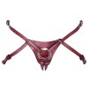 The sturdy Strap-on harness from ZADO is made of leather in an elegant dark red and black colour. The Strap-on also has silver metal details. The narrow straps of the harness can even be adjusted thanks to the buckle fastenings. A dildo/vibrator with a suction cup/base can be easily inserted into one of the front rings.