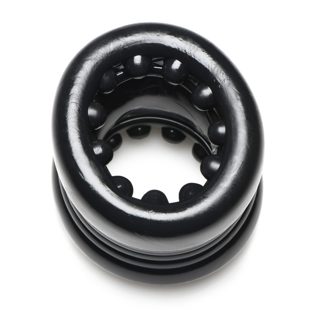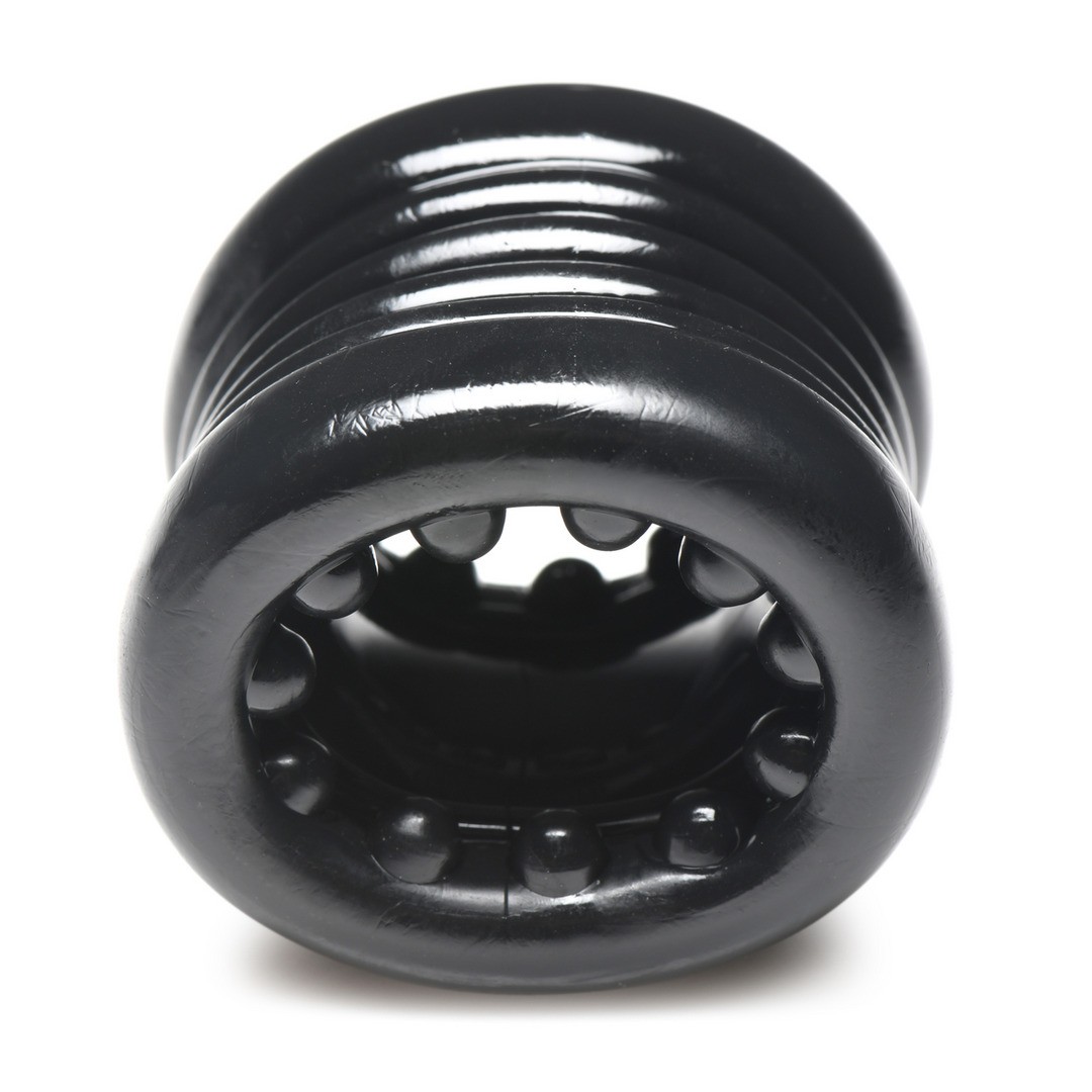 Comfortable, textured elastic TPE testicle extender to prolong pleasure and intensify stimulation.