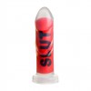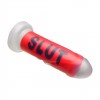 Premium silicone dildo with ribbed shaft, sturdy suction cup and the word SLUT prominently displayed for daring fantasies.
