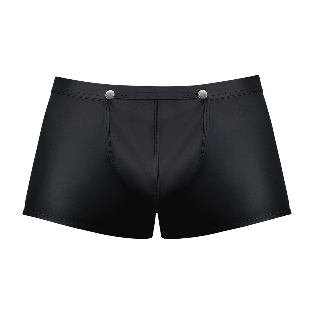 Male Power's Snap Off Shorts are a bold take on easy-access men's underwear, designed to make an immediate impact and reveal themselves with ease. Made from sleek spandex with a rubberised feel and a matte black finish, these men's briefs feature functional, durable nickel-plated snaps on the detachable pouch for quick and convenient access.