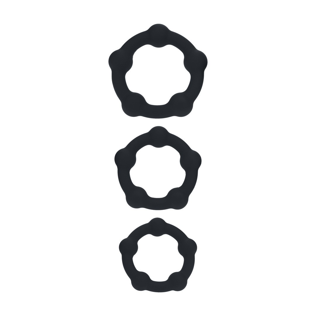 Set of three silicone cock rings in various sizes for a customised fit and greater pleasure.