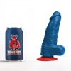 Realistic blue dildo with generous dimensions, red suction cup and veined texture for intense pleasure.