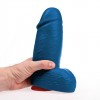 XXL blue dildo with realistic shape, testicles and removable suction cup.