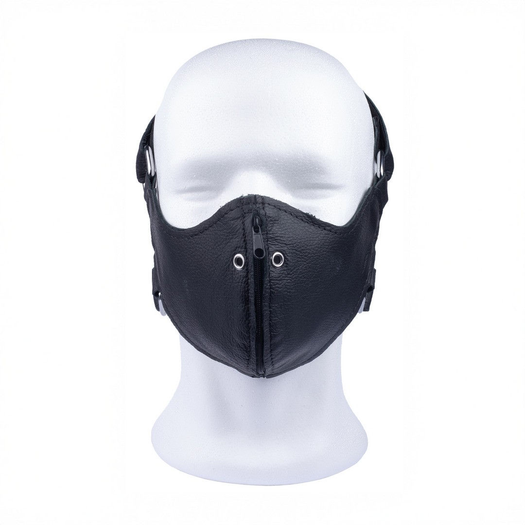 Leather mask designed to conceal half of the face, creating a discreet and provocative visual effect.