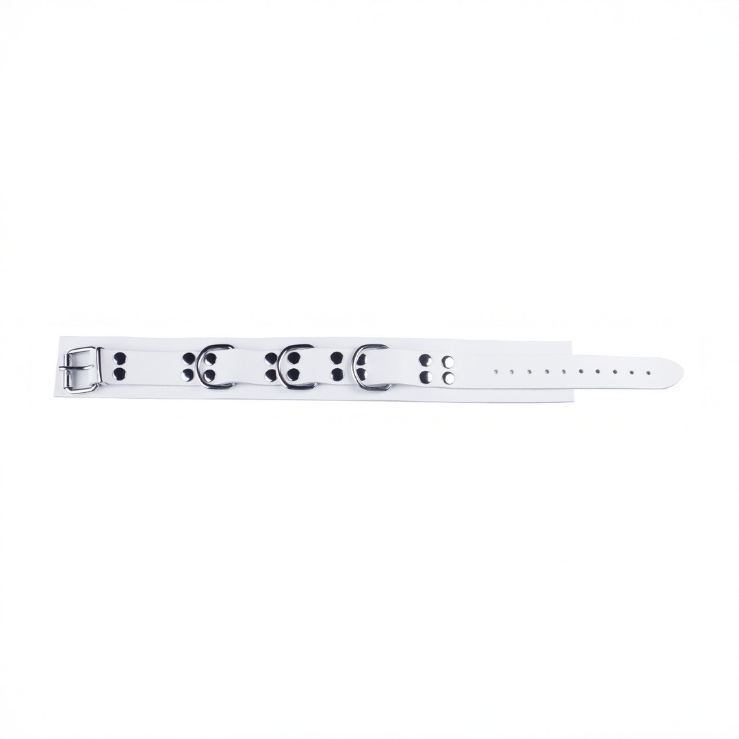 Leather collar from the Ultra range, designed to reinforce a striking and sophisticated SM style. 5.5 cm wide, it fits snugly and comfortably around the neck. Adjustable for circumferences between 38 and 52 cm, it easily adapts to different users. The metal clasps, rivets and rings provide strength, durability and a robust look.