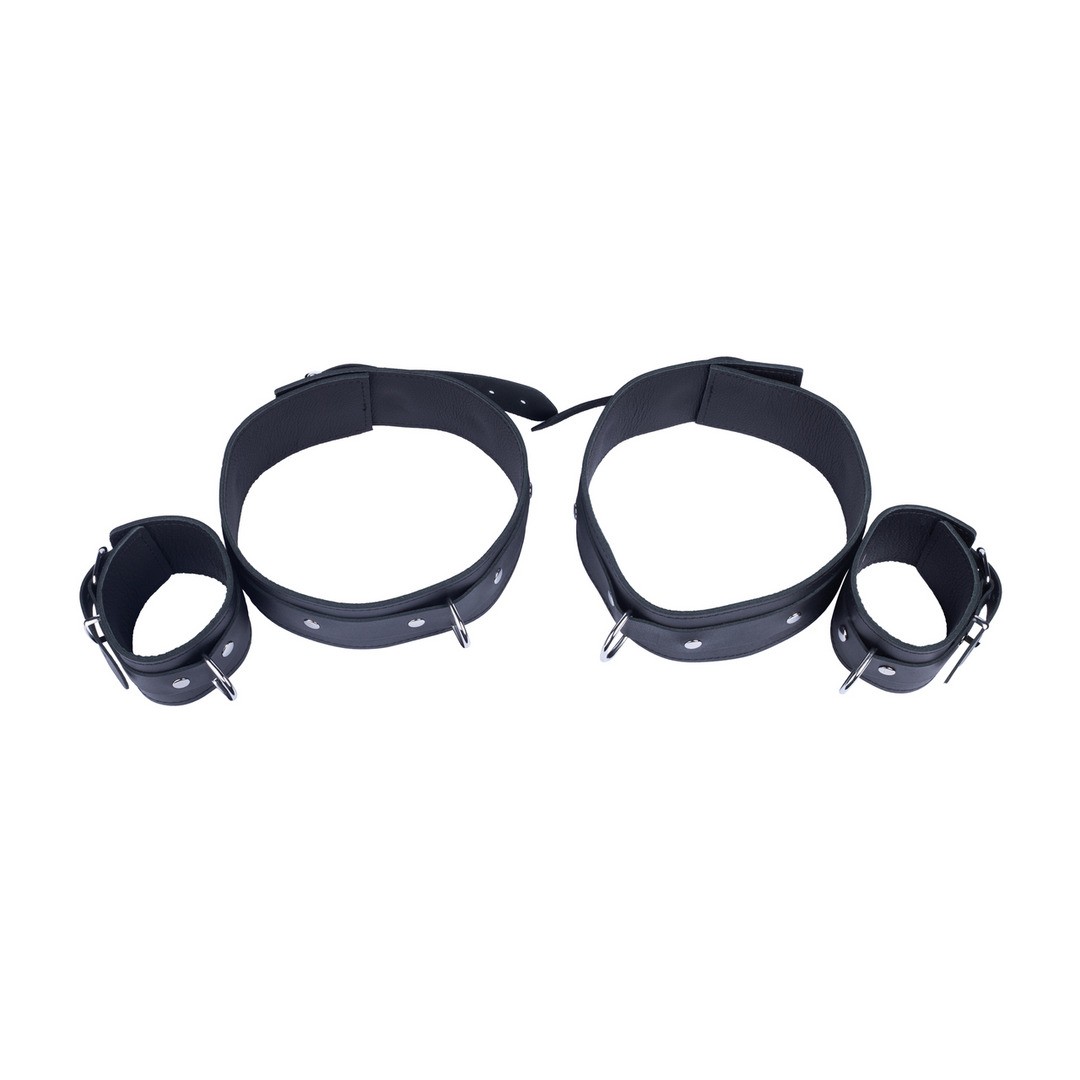 Leather cuffs designed to restrain the thighs and ankles, offering secure control and comfort.