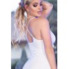 Sensual vestido largo elástico en suave tejido acanalado con tirantes ajustables cruzados en la parte posterior y extraíbles mediante bonitos ganchos plateados con pedrería. Incluye tanga ajustable.