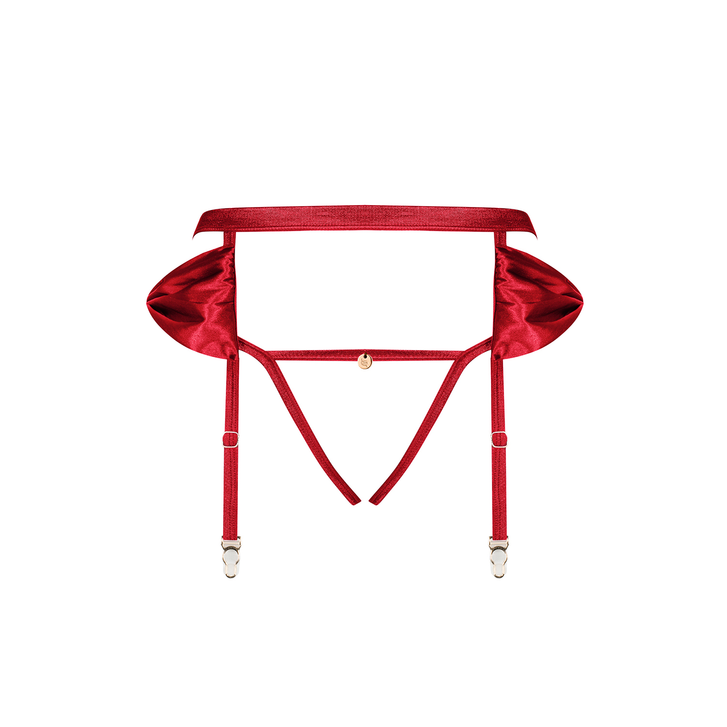- liguero rojo coqueto combinado con una tanga abierta
