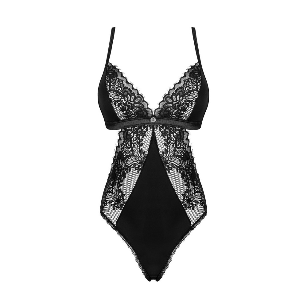 El body Maderris en negro revela tu silueta de forma irresistible. La combinación de encaje y malla añade atractivo sexual, mientras que el cierre multietapa en la entrepierna y la espalda garantiza un ajuste perfecto. Los tirantes son ajustables y el brillante colgante entre las copas llama la atención. El tejido altamente elástico proporciona comodidad y libertad de movimiento.