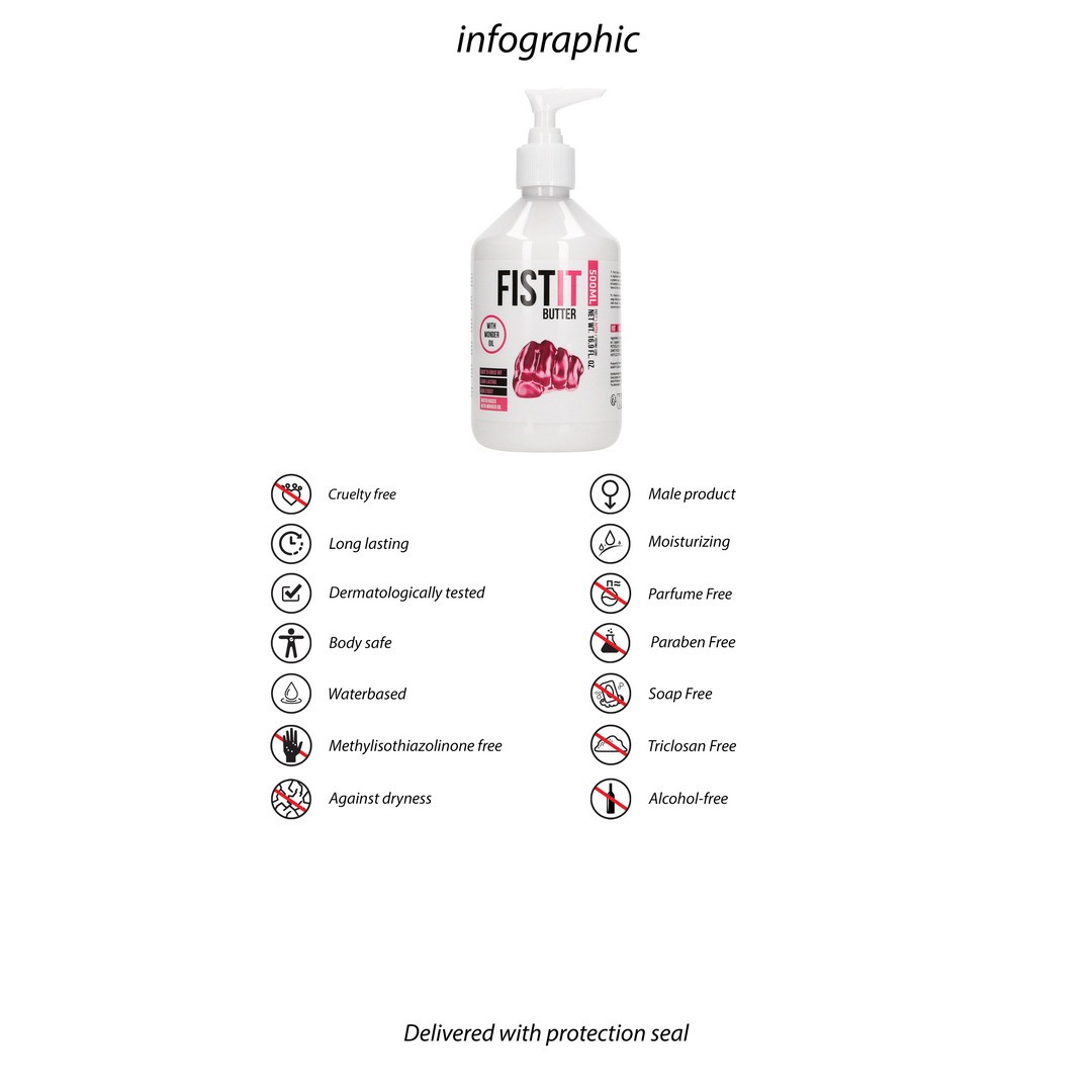 Fist It Boybutter es un lubricante de base acuosa elaborado con un maravilloso aceite que garantiza un efecto de larga duración.