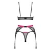 El conjunto de ligueros de 3 piezas, Novenes de Obsessive, tiene un sujetador sin aros, un liguero y un tanga.