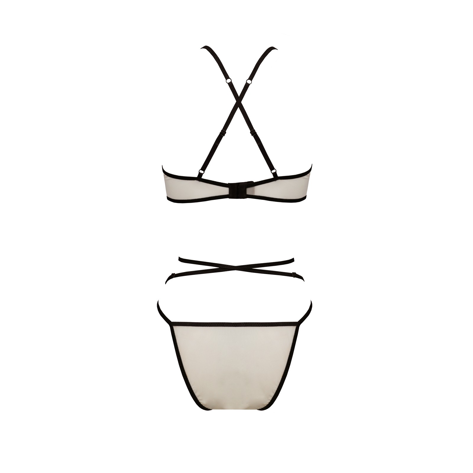 Este conjunto Chika by Passion consta de sujetador y tanga en una delicada y sensual combinación de beige con encaje blanco, creando un contraste elegante y sofisticado.