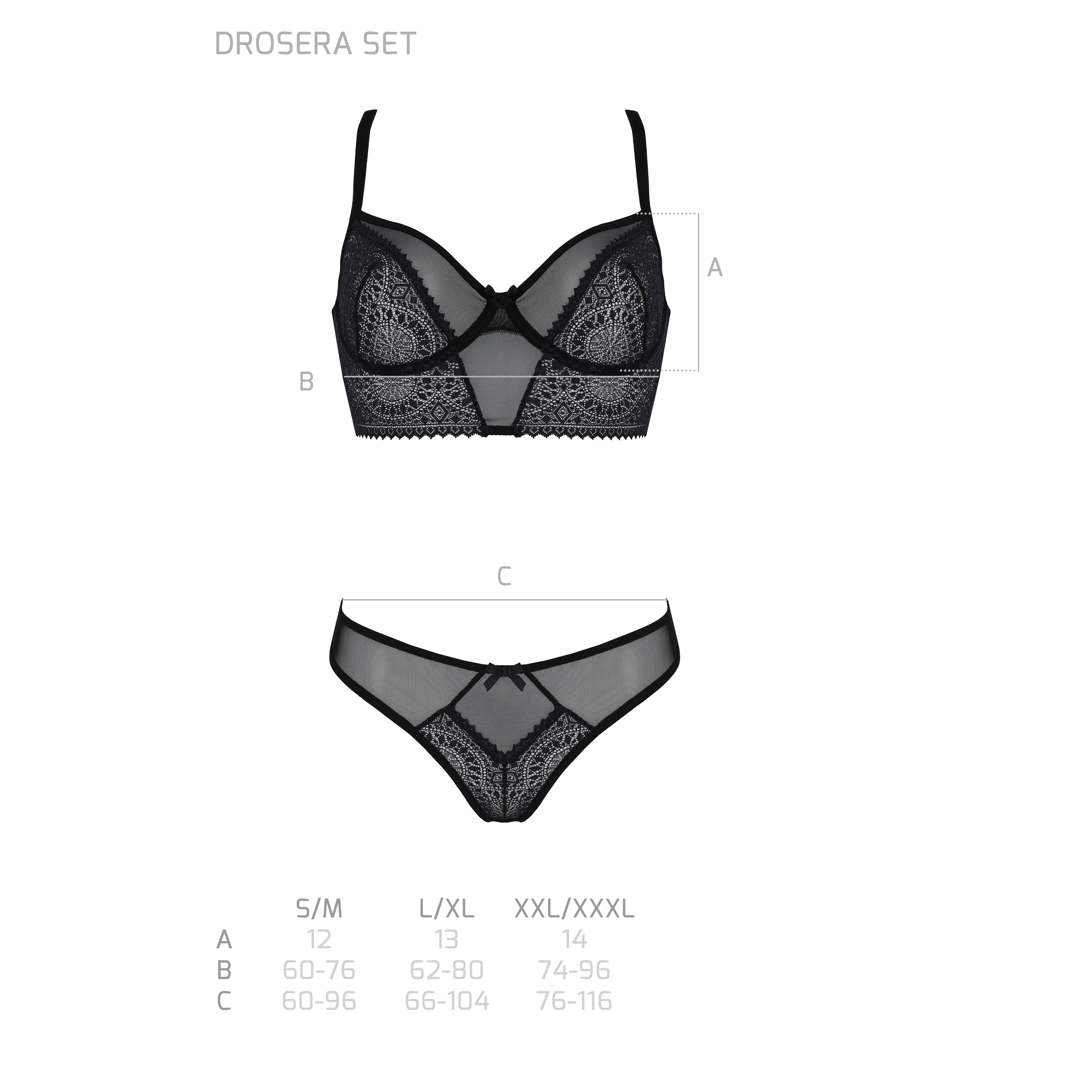 El conjunto Drosera Black combina sensualidad y sostenibilidad, al estar fabricado con materiales reciclados, tirantes ajustables y aros para una sujeción óptima.