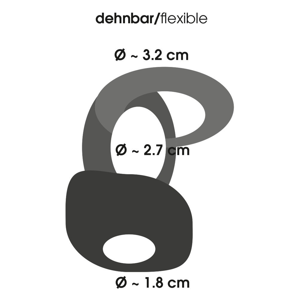 Anneau pour pénis et testicules avec rainures stimulantes à l'intérieur. Transparent/fumé. Anneaux Ø 3,2 cm, 2,7 cm et 1,8 cm. Très élastique, s'adaptant facilement aussi bien en longueur qu'en diamètre.