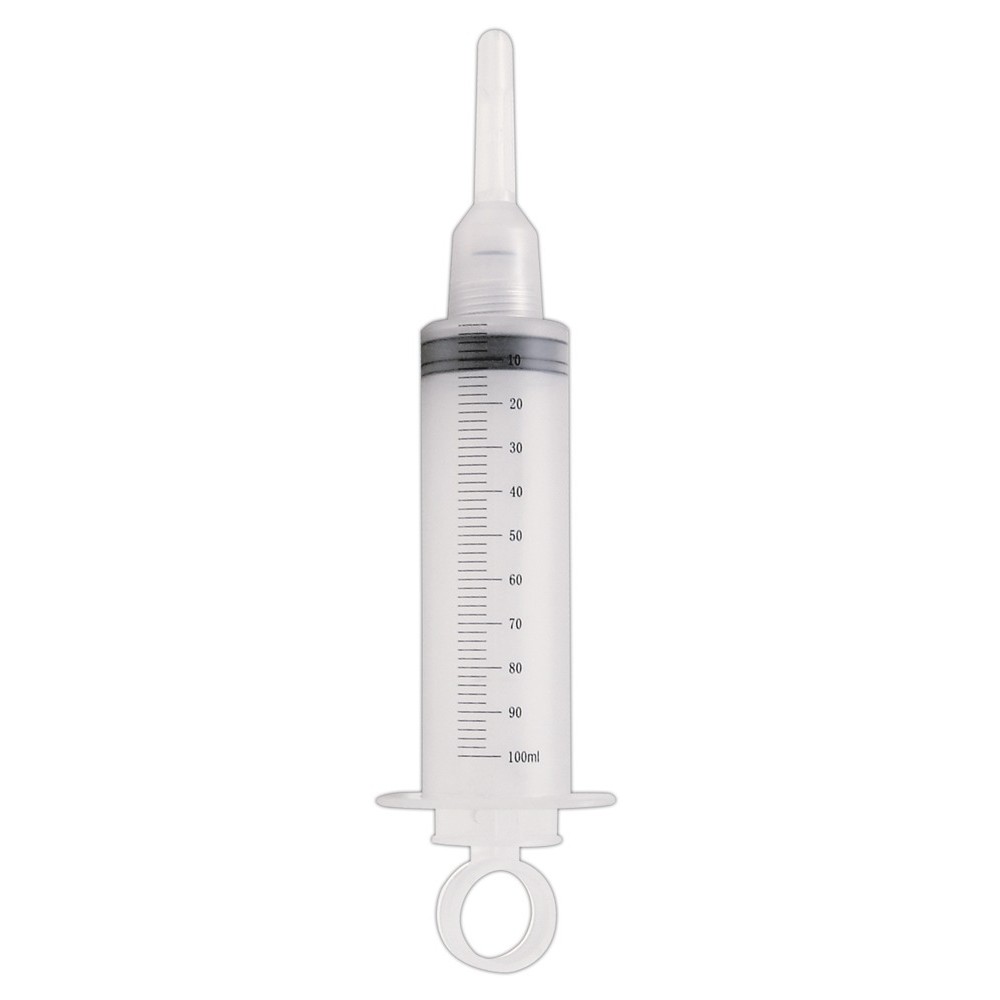 Capacité de 100 ml. Longueur de l'embout d'environ 20 cm. Profondeur d'insertion des accessoires de 5 ou 9 cm, avec un diamètre de 0,9 à 1,2 cm.
