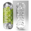 Masturbateur transparent et réutilisable Spinner SHELL de TENGA, avec une bobine interne intégrée qui fait tourner le masturbateur pendant la pénétration (Internal Coil Mechanism). La gaine présente un motif en forme d'éventail avec des bords fermes, offrant une stimulation ferme et enveloppante.