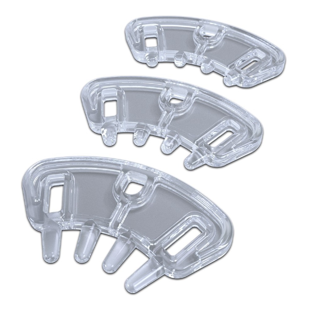 Comprend: 3 entretoises, un serre-testicules, un cadenas métallique avec clés, 5 cachets en plastique, un câble d'électrodes et 10 signaux de propriété. Livré avec un étui de rangement. Accessoire E-stim non inclus.