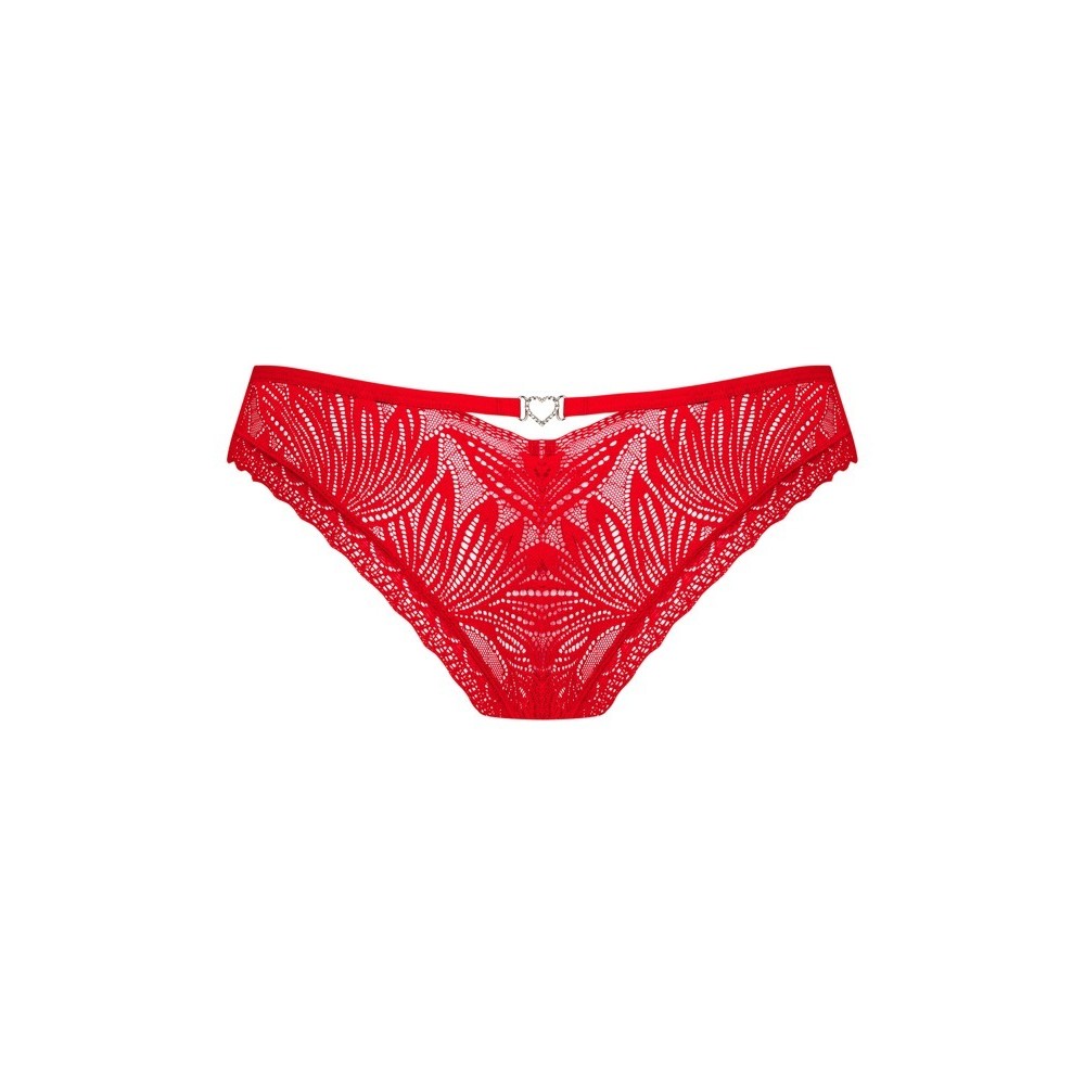 L'élégant string Chilisa d'Obsessive est entièrement confectionné en dentelle florale douce, qui épouse et met parfaitement en valeur les courbes féminines. Sur le devant, une découpe sophistiquée agrémentée d'un ruban délicat attire subtilement le regard, créant un effet séduisant. Le détail en forme de cœur brillant dans la partie inférieure ajoute une touche charmante et romantique.