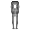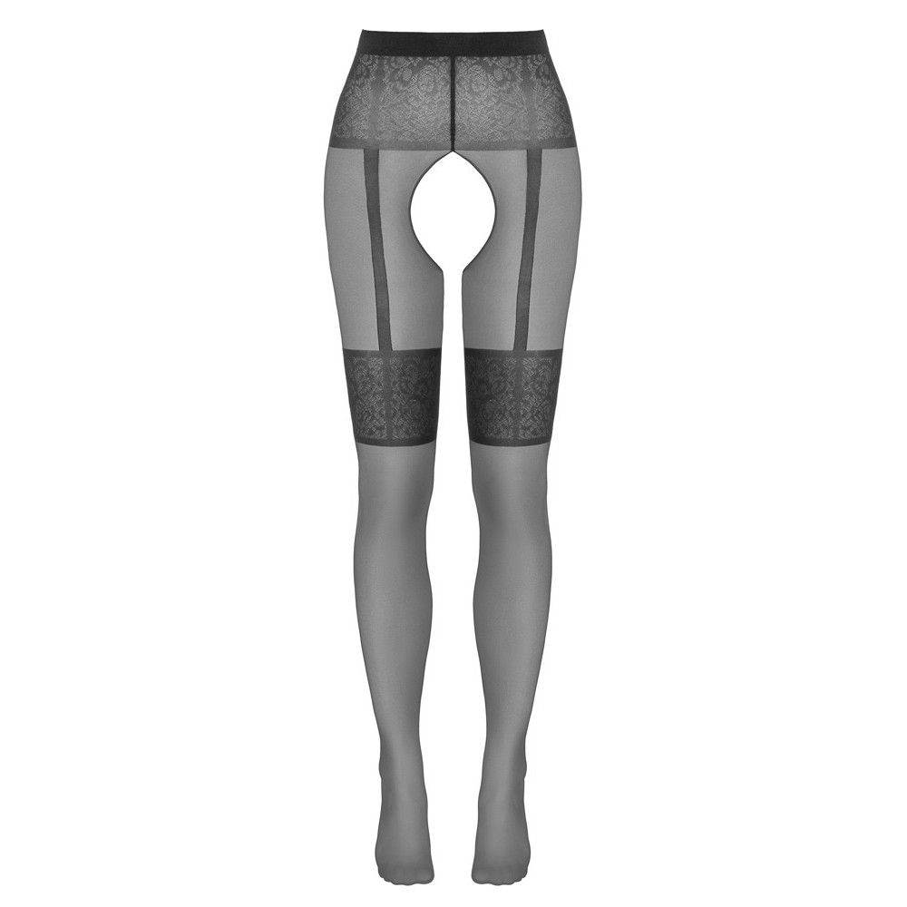 Bas noirs sans entrejambe de Cottelli LEGWARE, avec effet jarretière intégré et larges bandes au motif élégant de type dentelle. La large ouverture au niveau de l'entrejambe apporte une touche provocante, tandis que les pieds légèrement préformés garantissent un confort accru. Avec un denier de 20 et la certification Oeko-Tex, ils allient style et qualité.