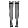 Bas à jarretières ornés d'un motif extravagant d'anneaux sur le haut, créant un effet visuel original et moderne. Le renfort en silicone à l'intérieur garantit un maintien sûr et antidérapant. Avec un denier de 17 et la certification Oeko-Tex, ils offrent légèreté et confort.