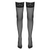 Bas à jarretelles avec une élégante bordure en dentelle de 8 cm de large et une couture décorative à l'arrière, ornés d'un délicat motif de lys en haut et en bas. Le renfort en silicone à l'intérieur garantit un maintien sûr et antidérapant. Les motifs de dentelle sont susceptibles d'être modifiés.