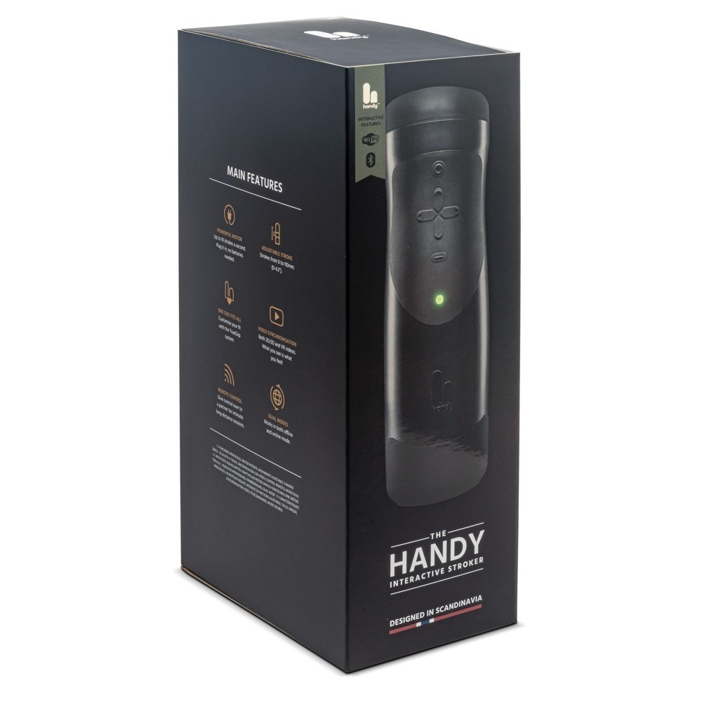 Le masturbateur The Handy Interactive Stroker, alimenté par le secteur, dispose d'un gaine à picots qui se fixe à l'appareil à l'aide de la bande TrueGrip. Le diamètre de la gaine, extrêmement flexible, peut être ajusté pour une sensation plus intense, et il est possible d'utiliser d'autres gaines compatibles.