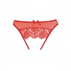 Les désirs cachés sont révélés dans cette culotte sans entrejambe en maille transparente apparemment secrète, avec de la dentelle en cils caressant le derriere ouvert. Le nœud qui la surmonte est un clin d'œil à la douceur, saupoudré d'un flot de coquinerie.