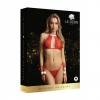 Ensemble de lingerie de Noël en dentelle rouge et tissu blanc doux. Sensuel, ajustable et idéal pour un Noël inoubliable.