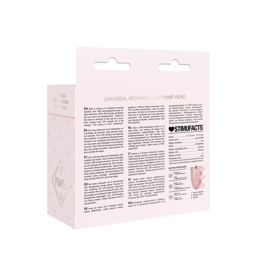 Tête de pompe à vide rechargeable avec 3 niveaux d'aspiration et 120 minutes d'autonomie pour une stimulation intense.