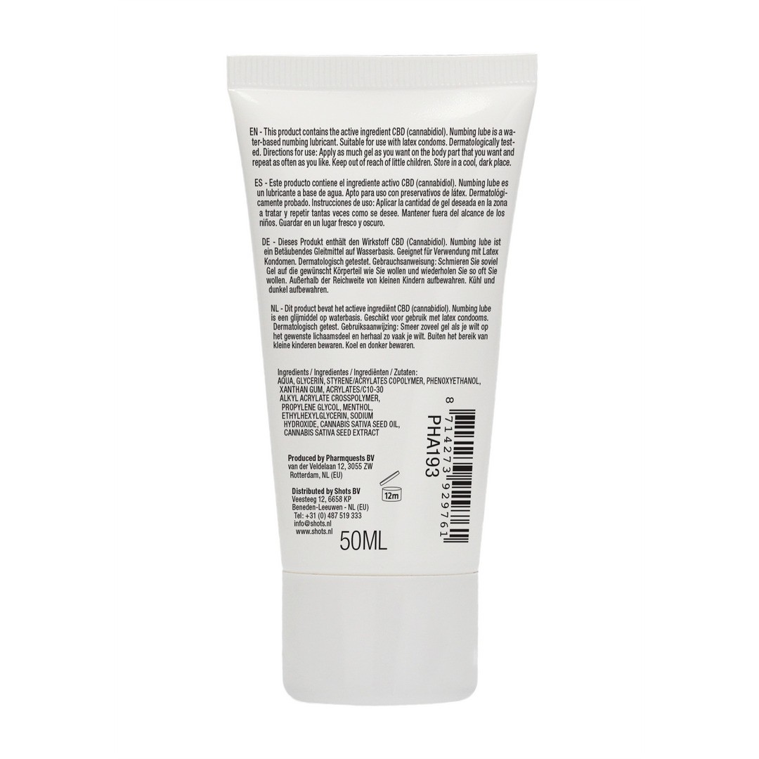 Lubrifiant analgésique naturel au CBD ! Ce lubrifiant contient du CBD comme ingrédient actif et est à base d'eau. Il peut être utilisé avec des préservatifs en latex et a été testé sous contrôle dermatologique.