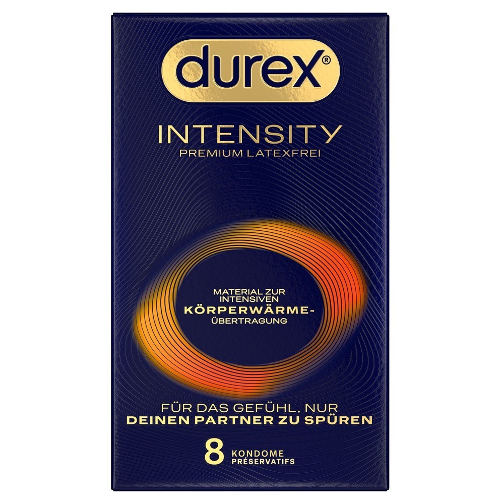 Les préservatifs Intensity de Durex, extrêmement fins et sans latex, sont en nitrile, ce qui permet un transfert intense de la chaleur corporelle et la sensation de ne sentir que son partenaire. Leur taille supérieure (largeur nominale de 61 mm) assure un plus grand confort d'utilisation. Ils sont généreusement lubrifiés avec un lubrifiant à base de silicone.