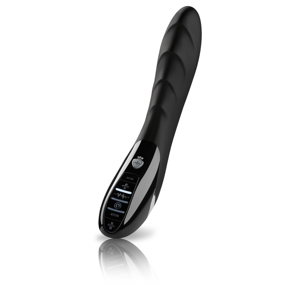 Vibratore con struttura stimolante, progettato per offrire un piacere intenso grazie alla combinazione di vibrazioni e stimolazione elettrica, senza bisogno di dispositivi esterni o cavi aggiuntivi. I suoi due tipi di stimolazione agiscono simultaneamente, offrendo un'esperienza avanzata e coinvolgente. Dispone di 8 programmi di vibrazione, 5 diversi tipi di correnti stimolanti e un programma specifico per l'allenamento dei muscoli del pavimento pelvico, tutti facilmente regolabili.