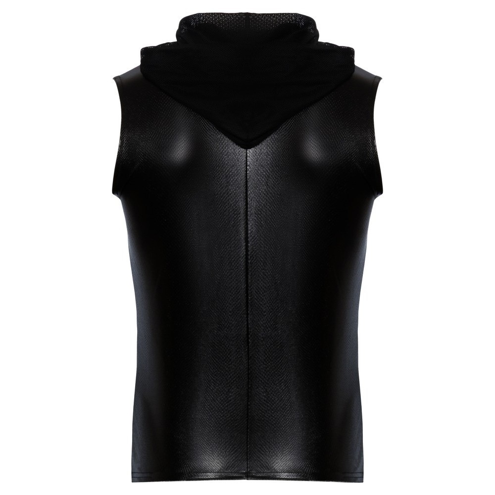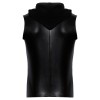 Camicia corta Noir con cappuccio, senza maniche, dall'aspetto luccicante pelle di serpente. Estremamente elastica per una vestibilità perfetta e un elevato comfort. Cappuccio elegante in tessuto morbido e delicato, con cordino di regolazione. Chiusura con cerniera a doppio cursore su tutta la lunghezza sul davanti.