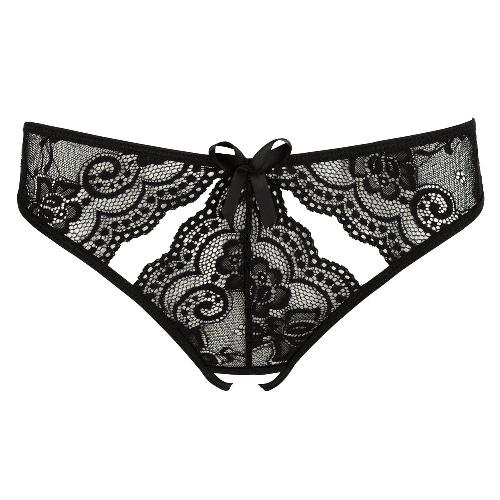Queste mutandine nere in pizzo si distinguono per il loro audace stile senza cavallo e per i piccoli e delicati ritagli sul davanti e sul retro, che aggiungono un tocco seducente e sofisticato. Un modello provocante che esalta con fascino le curve femminili.
