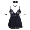 Set Cottelli BONDAGE composto da babydoll, collare, fermagli per le braccia e foulard bondage. Il babydoll corto, leggermente svasato, è realizzato in powernet delicato ed elastico, con gonna a due strati e coppe in pizzo che possono essere aperte rapidamente tramite bottoni a pressione. Il collare regolabile, le spalline regolabili e la fascia sotto il seno in materiale dall'aspetto opaco presentano borchie e anelli argentati. Le clip per le braccia possono essere fissate agli anelli laterali con ganci a pressione e si regolano facilmente grazie alle chiusure a gancio e anello. Include anche un foulard bondage lungo 1,20 metri, che può essere utilizzato come restrizione o benda per gli occhi.