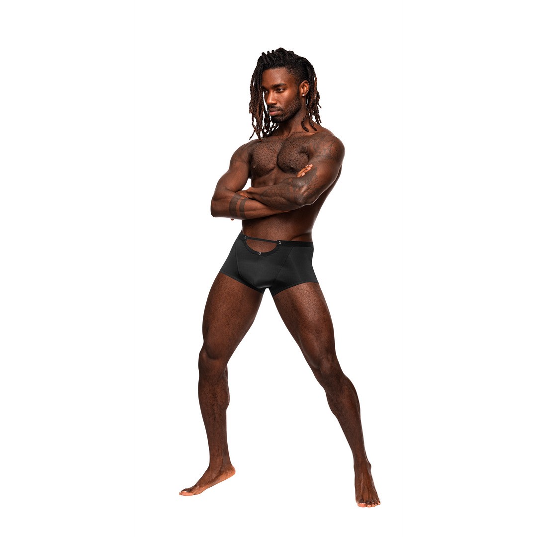 Boxer mini short con dettagli metallici e taglio in vita che unisce audacia e comfort elegante.